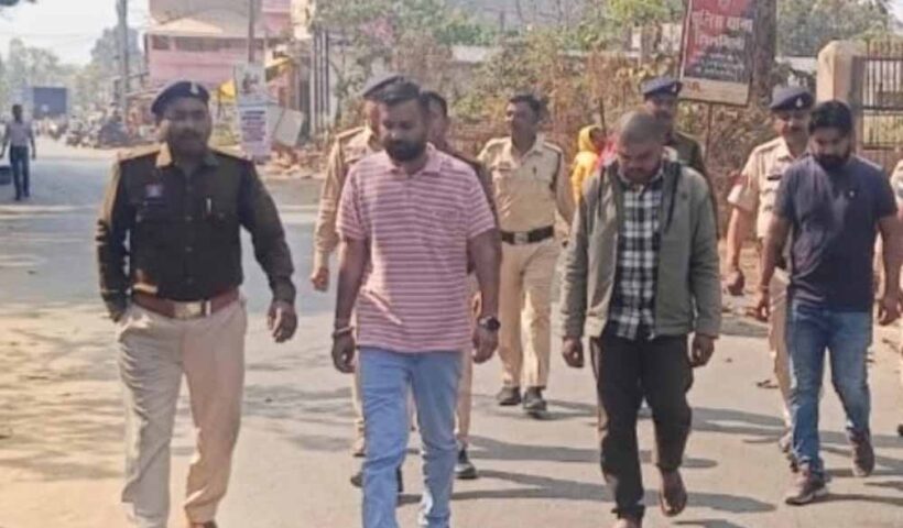 सूरजपुर में पेट्रोल पंप पर शराबियों का बवाल, 4 आरोपी गिरफ्तार—पुलिस ने निकाला जुलूस