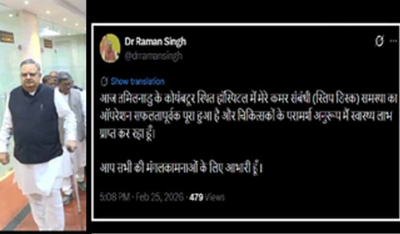 रायपुर. विधानसभा अध्यक्ष डॉ रमन सिंह का कोयंबटूर में स्लिप डिस्क का ऑपरेशन हुआ. डॉक्टर रमन सिंह का आपरेशन सफल रहा. खुद डॉक्टर रमन सिंह…