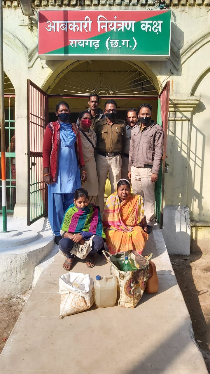 रायगढ़।आबकारी उड़न दस्ता की टीम ने चक्रधरनगर थाना क्षेत्र के टारपाली में दबिश देकर 2 महिला से 20 लीटर कच्ची शराब जप्त किया है।उनके विरुद्ध आबकारी अधिनियम के तहत मामला दर्ज कर जेल भेज दिया गया है।