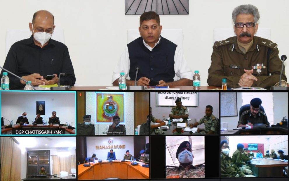 रायपुर। मुख्य सचिव अमिताभ जैन की अध्यक्षता में आज वीडियो कॉन्फ्रेंसिंग के माध्यम से आयोजित बैठक में कानून व्यवस्था, चिटफंड कम्पनियों पर कार्रवाई, आदिवासियों के प्रकरणों की वापसी और धान खरीदी की समीक्षा की गई। बैठक में पुलिस महानिदेशक अशोक जुनेजा, अपर मुख्य सचिव गृह सुब्रत साहू, छत्तीसगढ़ के समस्त संभागीय आयुक्त, रेंज पुलिस महानिरीक्षक, जिला कलेक्टर एवं जिला पुलिस अधीक्षक वीडियो कॉन्फ्रेंसिंग से शामिल हुए। बैठक में गृह विभाग एवं पुलिस मुख्यालय के वरिष्ठ अधिकारी उपस्थित थे।
