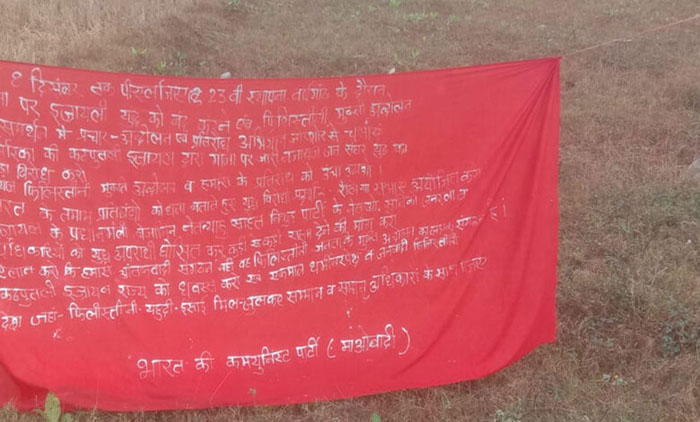 PV 122 के पास नक्सलियों ने लगाए बैनर