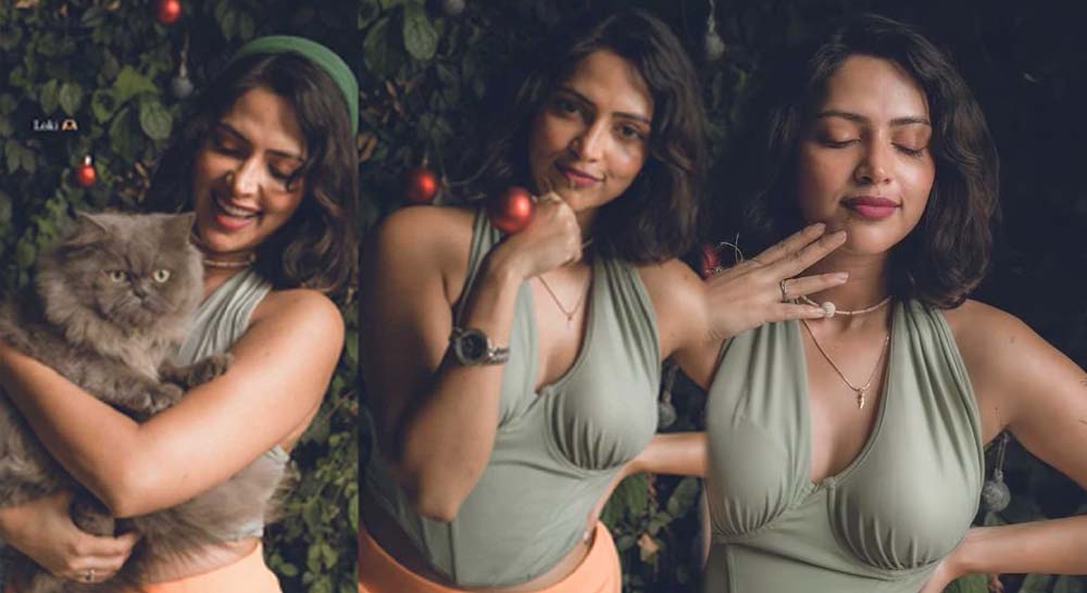 हॉल्टर नेक टॉप में अमला पॉल ने फ्लॉन्ट किया बेबी बंप, पालतू बिल्ली के साथ दिए जमकर पोज