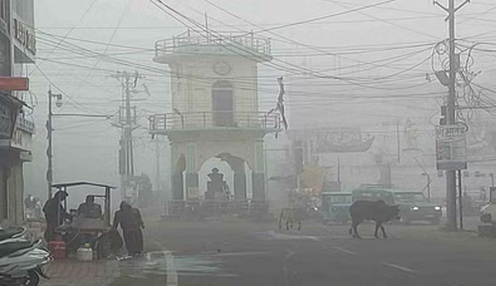 नए साल की शुरुआत से लगातार कोहरे और शीतलहर के चलने का क्रम जारी है। समूचा दमोह जिला ठंड से कांप रहा है। गुरुवार की सुबह से काफी घना कोहरा छाया रहा। ओस के कारण सड़क पर चल रहे लोगों के कपड़े भी हल्के भीगे रहे। आलम यह है कि घंटाघर समीप से भी नहीं दिखाई दे रहा है। सुबह सर्किट हाउस पर भी घना कोहरा छाया हुआ है। मॉर्निंग वॉक पर आए हुए लोग अपने हाथों को मलते हुए नजर आए। शहर के बेलाताल टापू भी कोहरे से ढका हुआ है और तालाब के चारों ओर कोहरे की सफेद चादर दिखाई दे रही है। इतने घने के बीच भी सुबह से लोग साईं मंदिर बाबा के दर्शनों के लिए पहुंचे।