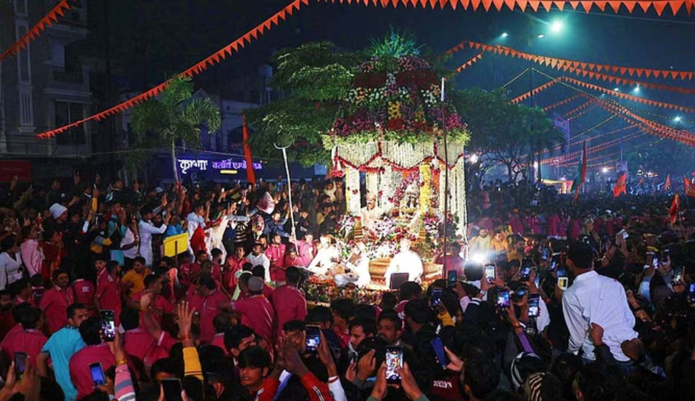 मार्ग पर आकर्षक रोशनी की गई थी और जैसे ही रथ मंचों के करीब आ रहा था तो आतिशबाजी से आसमान को रोशन किया जा रहा था। प्रभातफेरी मार्ग को भगवा ध्वजाओं से सजाए गया था। रणजीत भक्त मंडल के 2 हजार सदस्य प्रभातफेरी की व्यवस्था संभाल रखी थी। वे खुद नंगे पैर यात्रा में मोटा रस्सा पकड़ कर चल रहे थे।