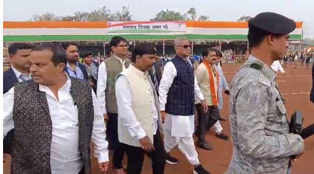 भारतीय जनता पार्टी के प्रदेश प्रभारी ओम माथुर, उपमुख्यमंत्री विजय शर्मा, वित्त मंत्री ओ.पी. चौधरी और वन मंत्री केदार कश्यप एक साथ बुधवार को पुलिस परेड ग्राउंड पहुँचने पर अच्छा दृश्य देखने को मिला। श्री माथुर, उपमुख्यमंत्री श्री शर्मा, मंत्री द्वय श्री चौधरी व श्री कश्यप सुकमा प्रवास पर जाने के लिए हेलीपेड पहुँचे थे। इसी दौरान हेलीकॉप्टर पर सवार होने के लिए जाते समय उन्होंने गणतंत्र दिवस की फाइनल रिहर्सल देते हुए स्कूली बच्चों को देखा तो स्वयं को रोक नही पाए और सभी भाजपा नेता बच्चों के बीच जा पहुंचे। बच्चे उन्हें अपने बीच पाकर प्रफुल्लित हो उठे।