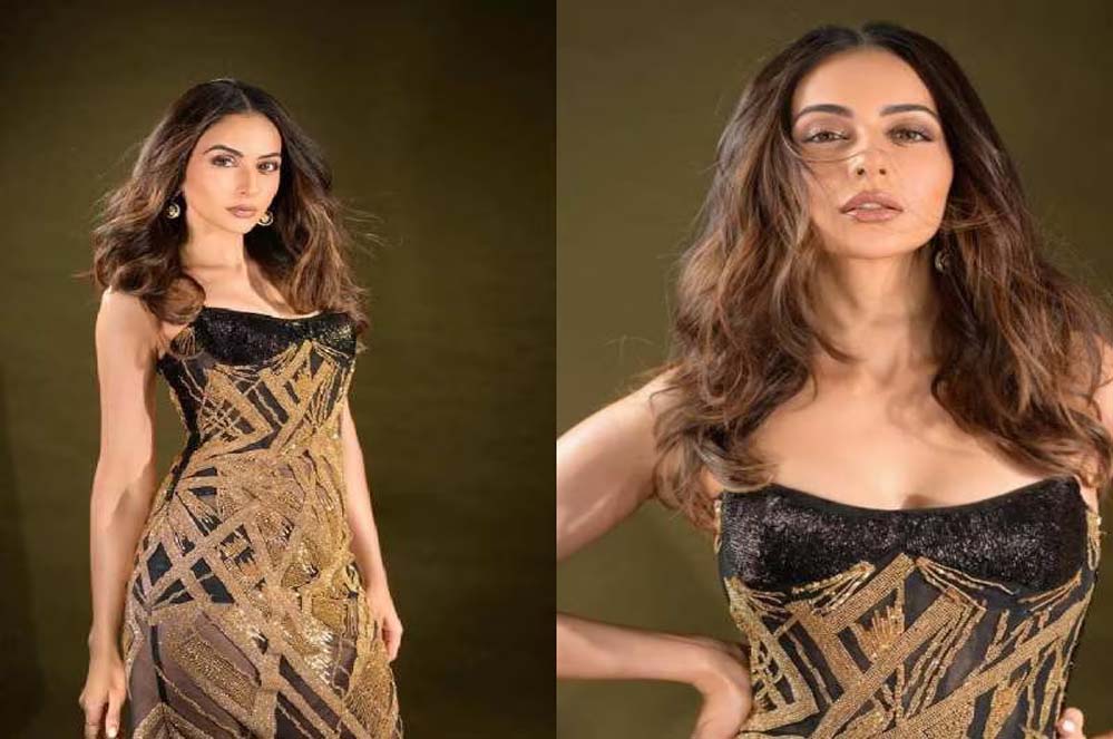 ब्राउन कलर की शिमरी ड्रेस में रकुल प्रीत सिंह बेहद खूबसूरत लग रही हैं. रकुल ने शिमरी ड्रेस के साथ लाइट मेकअप कैरी किया हुआ है. रकुल के फैंस उनके इस अवतार को काफी पसंद कर रहे हैं. ब्लैक और गोल्डन ऑफ शोल्डर ड्रेस में रकुल प्रीत सिंह बेहद ग्लैमरस लग रही हैं.