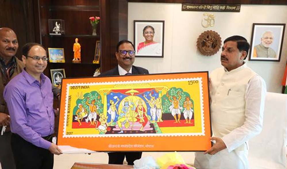 मुख्यमंत्री डॉ.यादव को डाक विभाग द्वारा राममंदिर पर जारी की गई विशेष डाक टिकिट भी भेंट की