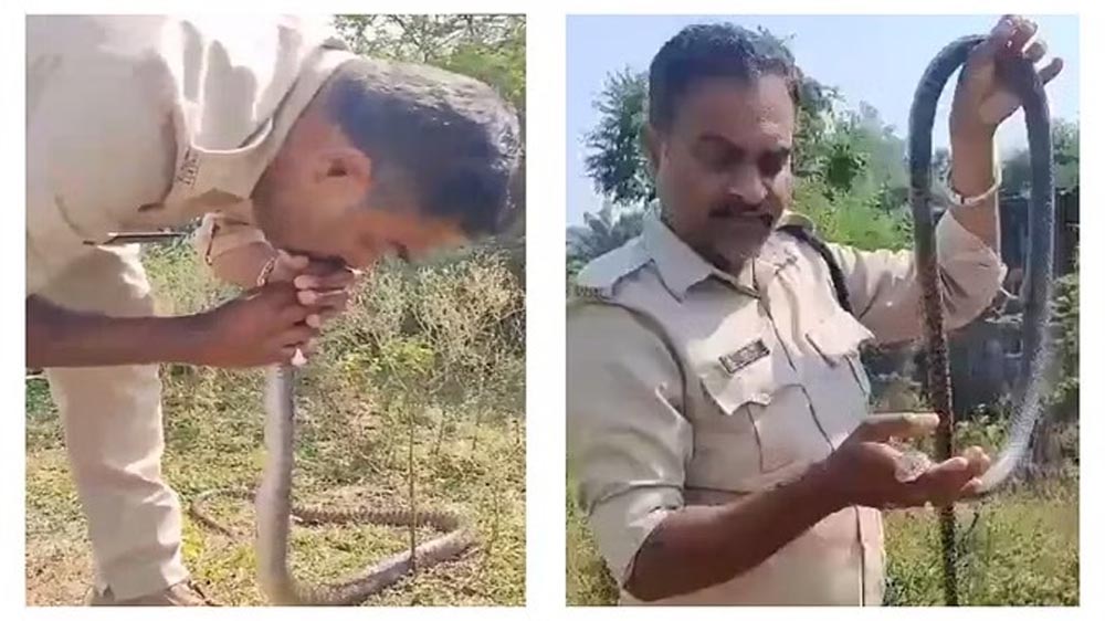 कीटनाशक पीने से खतरे में आई सांप की जान, पुलिसकर्मी ने सीपीआर देकर बचाई जान