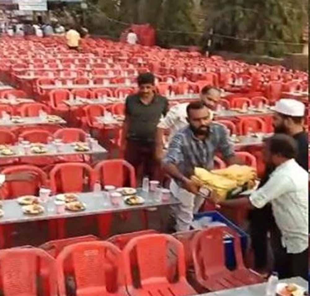 रमजान का महीना चल रहा है। इस महीने में मुसलमान रोजा रखते हैं। ऐसे में रोजा के बाद इफ्तारी का कार्यक्रम भी होता है। शाम को सभी मुस्लिम भाई रोजे के बाद इफ्तारी कर रोजा खोलते हैं। ऐसा ही एक वीडियो सोशल मीडिया पर तेजी से वायरल हो रहा है। जिसमें एक सड़क पर इफ्तारी के लिए कुर्सियां लगाई गईं हैं। वायरल वीडियो कर्नाटक के मंगलुरू का बताया जा रहा है। बता दें कि कर्नाटक में कांग्रेस की सरकार है।