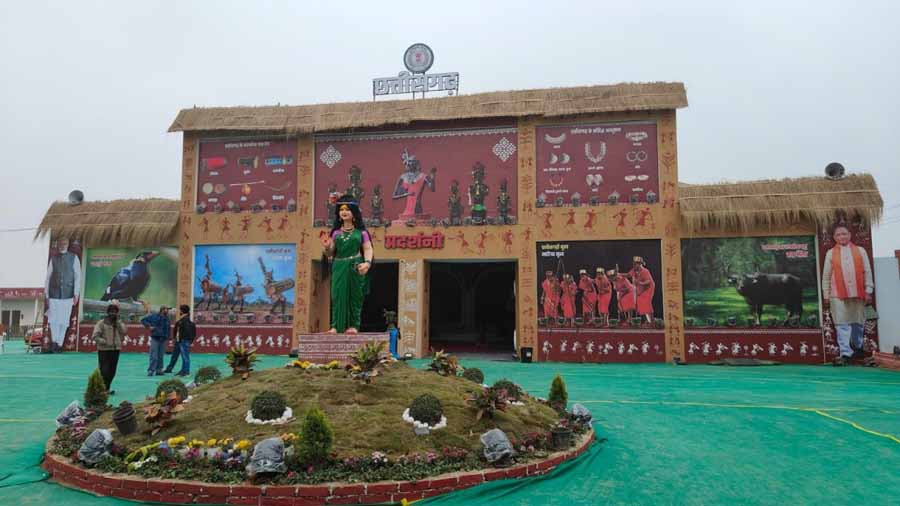 पैवेलियन के भीतर प्रवेश करते ही बांयी तरफ छत्तीसगढ़ के जीवंत ग्रामीण परिवेश को दिखाया गया है। यहां पर परंपरागत ग्रामीण जीवन के साथ ही आदिवासी कला, संस्कृति, आभूषण, वस्त्र समेत एक संपूर्ण गांव का चित्रण किया गया है।