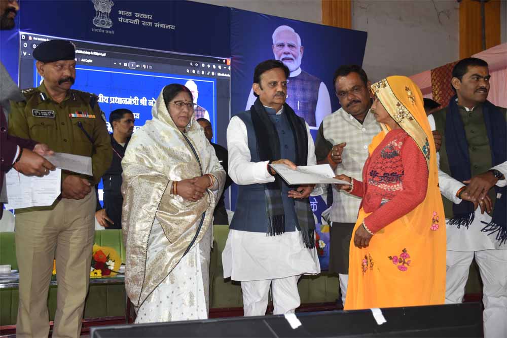 उप मुख्यमंत्री श्री शुक्ल ने शहरी क्षेत्र में सूची बनाकर समस्त पात्र हितग्राहियों को धारणाधिकार के पट्टे दिलाये जाने के निर्देश दिये। उन्होंने जनप्रतिनिधियों व अधिकारियों से अपेक्षा की कि हितग्राहीमूलक योजनाओं के क्रियान्वयन में सहभागी बनकर प्रजातंत्र को वरदान बनायें। उप मुख्यमंत्री ने हितग्राहियों को स्वामित्व कार्ड का वितरण किया।कलेक्टर श्रीमती प्रतिभा पाल ने बताया कि जिले के 156 ग्रामों के 4283 हितग्राहियों का 7 लाख 95 हज़ार 234 वर्ग मीटर भूमि का पट्टा प्रदान किया जा रहा है। इससे पूर्व वर्ष 2023 से मार्च 2024 तक जिले के 44 ग्रामों के कुल 2211 पट्टे बांटे जा चुके हैं। शेष पट्टे आगामी 31 जनवरी तक वितरित कर दिये जायेंगे। जिला पंचायत अध्यक्ष श्रीमती नीता कोल, अध्यक्ष नगर निगम श्री व्यंकटेश पाण्डेय, डीआईजी श्री साकेत सहित स्थानीय जनप्रतिनिधि विभागीय अधिकारी व हितग्राही उपस्थित रहे।