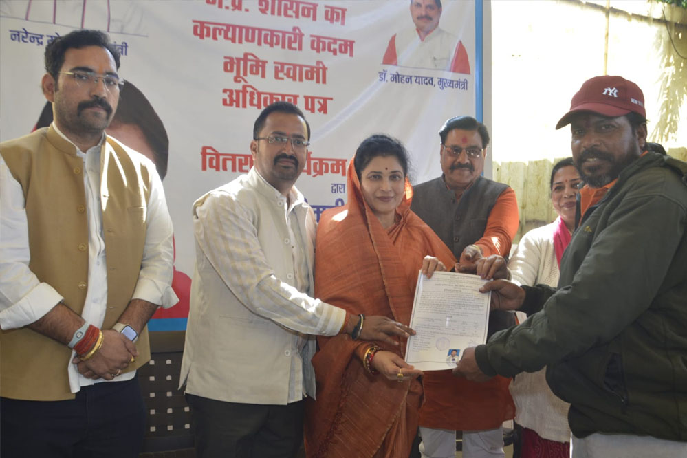 मंत्री श्रीमती गौर ने खजूरी कला बरखेड़ा पठानी आदि बस्तियों के 61 रहवासियों को भूमि स्वामी अधिकार-पत्र वितरित किये