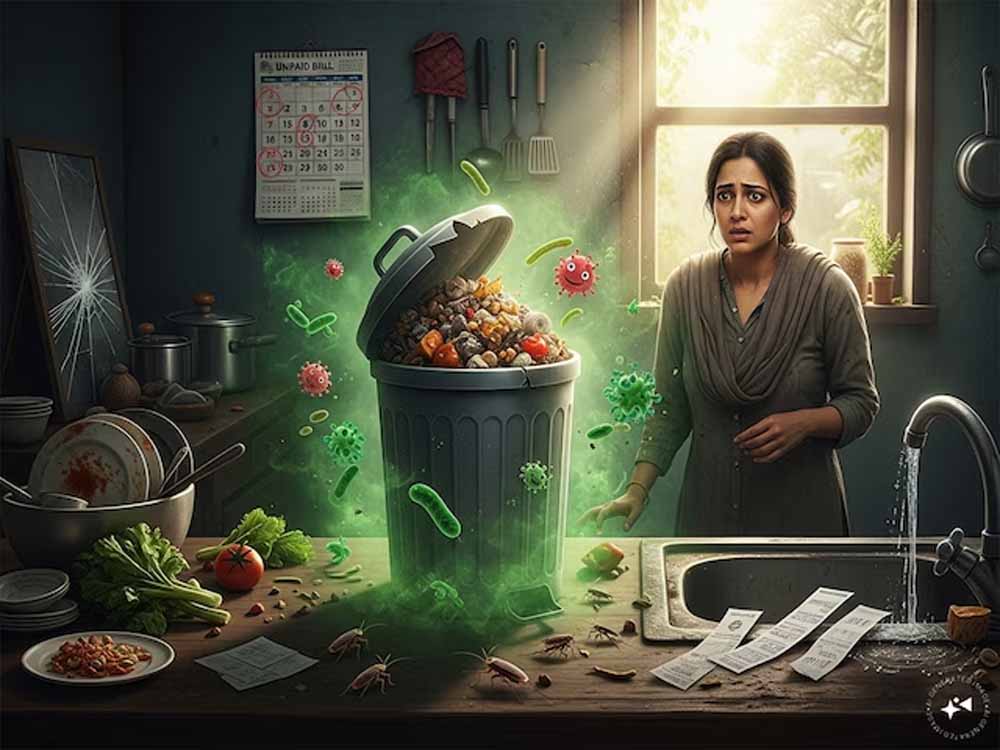 स्वास्थ्य ही नहीं, खुला डस्टबिन मानसिक शांति को भी भंग करता है। रसोई में गंदगी, बदबू और कीटाणुओं की मौजूदगी घर के वातावरण को भारी और तनावपूर्ण बना देती है। यह स्थिति मानसिक थकान, चिड़चिड़ापन और एकाग्रता की कमी जैसी समस्याओं को जन्म देती है। वास्तु शास्त्र का मानना है कि जहां गंदगी है, वहां लक्ष्मी का वास नहीं होता। यही कारण है कि ऐसे घरों में अक्सर आर्थिक परेशानियां, क्लेश और दुर्भाग्य का अनुभव होता है।
