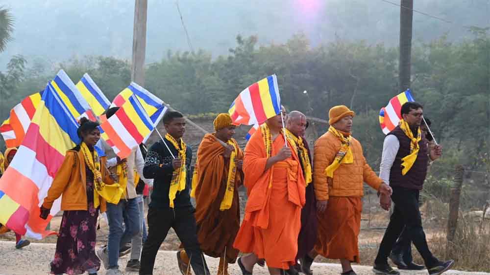 बिहार-गया में महाबोधि मंदिर तक निकली ज्ञान यात्रा में देश-विदेश के बौद्ध श्रद्धालु शामिल