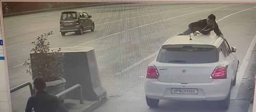 आगरा में एक टोल कर्मी को टोल टैक्स मांगना भारी पड़ गया, बोनट पर लेकर 1 किमी दौड़ाई कार