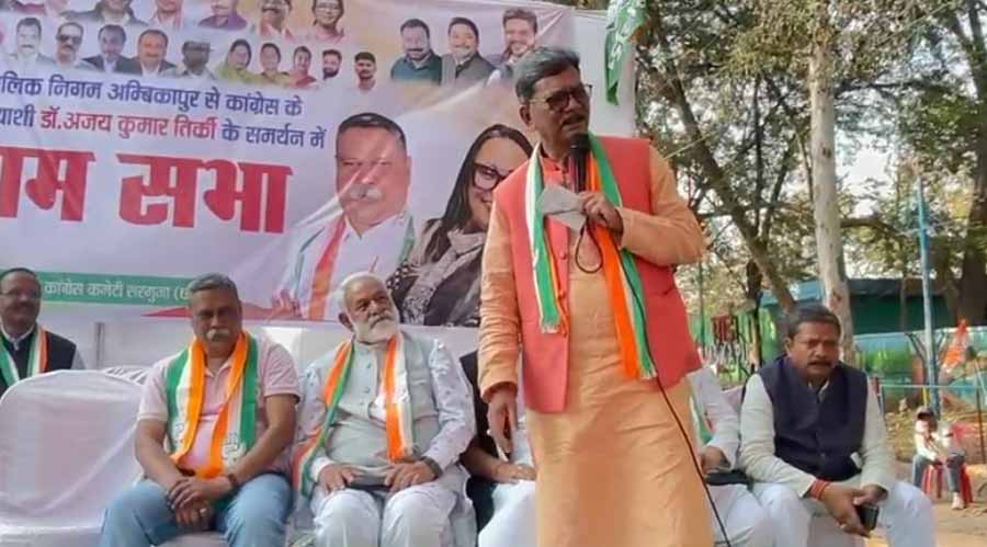 नगरीय निकाय चुनाव में महापौर प्रत्याशी के प्रचार के लिए अंबिकापुर पहुंचे डॉ. चरणदास महंत ने टीएस सिंहदेव की मौजूदगी में आम सभा को सम्बोधित किया. इसके बाद मीडिया से चर्चा में नेता प्रतिपक्ष डॉ. महंत ने कहा कि अब हम सब लोग साथ रहेंगे. महाराज (टीएस सिंहदेव) की अगुवाई में चुनाव लड़ेंगे. निश्चित रूप से (अगली बार) हमारी सरकार बनेगी.