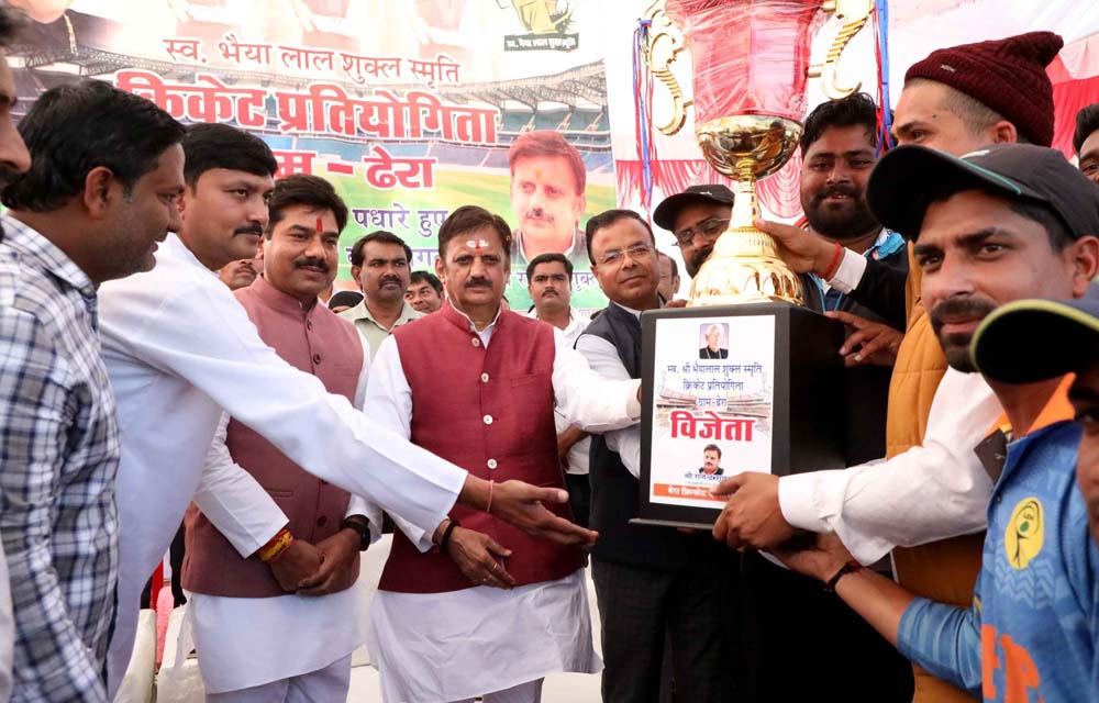 उप मुख्यमंत्री राजेन्द्र शुक्ल ने कहा है कि मेहनत एवं ईमानदारी से किये गये कार्य का सकारात्मक परिणाम मिलता है। उन्होंने पूज्य पिता जी की स्मृति में आयोजित किये जा रहे टूर्नामेंट के आयोजकों बधाई दी। उप मुख्यमंत्री श्री शुक्ल ने कहा कि पूर्वजों की स्मृति आने वाली पीढ़ी का मार्ग प्रशस्त करती है। उप मुख्यमंत्री ने अपने गृह ग्राम ढ़ेरा में स्व. भैयालाल शुक्ल स्मृति क्रिकेट टूर्नामेंट की विजेता व उप विजेता टीम को नगद पुरस्कार व ट्राफी प्रदान की।