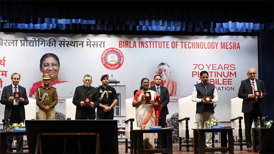 राष्ट्रपति द्रौपदी मुर्मू दो दिवसीय दौरे पर झारखंड में हैं। बीते दिन झारखंड के राज्यपाल संतोष कुमार गंगवार ने रांची पहुंचने पर राष्ट्रपति द्रौपदी मुर्मू का स्वागत किया था। इसके तहत राष्ट्रपति मुर्मू ने आज बिरला प्रौद्योगिकी संस्थान, मेसरा (बीआईटी-मेसरा) के प्लेटिनम जुबली समारोह में हिस्सा लिया। यहां उन्होंने कहा कि बीआईटी मेसरा ने 70 साल पूरे कर लिए हैं। इसकी समृद्ध विरासत पर गर्व है। केंद्र सरकार उच्च शिक्षा में एआई को एकीकृत करने के लिए कदम उठा रही है। बीआईटी मेसरा संबंधित पाठ्यक्रम शुरू करके इस दिशा में आगे है।