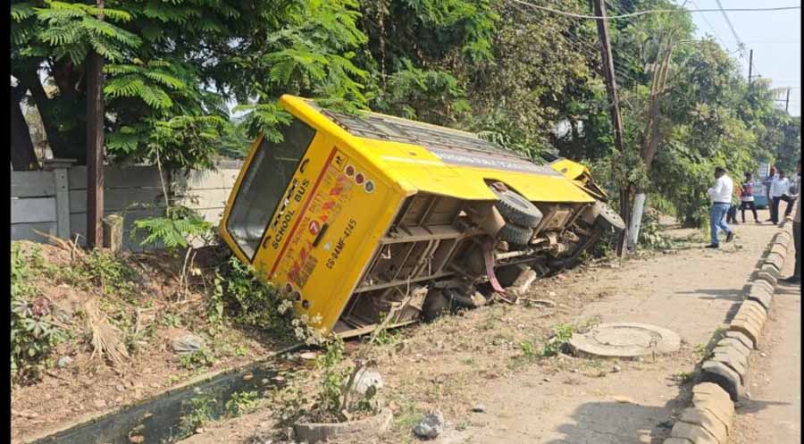 बड़ा हादसा टला: तेज रफ्तार स्कूल की बस पलटी, बच्चे नहीं थे सवार