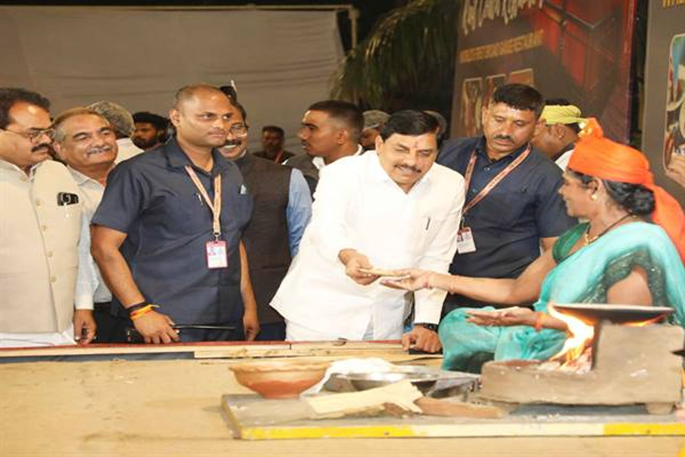 मुख्यमंत्री डॉ. यादव ने ऐतिहासिक पृष्ठभूमि पर आधारित फिल्म "छावा" के प्रदर्शन के अवसर पर लेक व्यू अशोका ओपन थिएटर परिसर में भोजन व्यवस्था देख रहे कारीगरों से आत्मीयता पूर्वक चर्चा की। उनके द्वारा परोसे जा रहे श्री अन्न (मोटे अनाज) के व्यंजन और उन्हें तैयार करने की विधि के संबंध में जानकारी प्राप्त की। मुख्यमंत्री डॉ. यादव ने स्वादिष्ट व्यंजनों की प्रशंसा भी की।