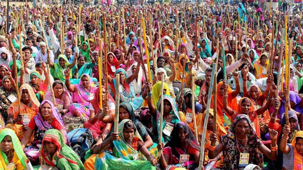 पवित्र स्थल के नजदीक फ्लाईओवर के निर्माण के खिलाफ आदिवासियों ने किया प्रदर्शन