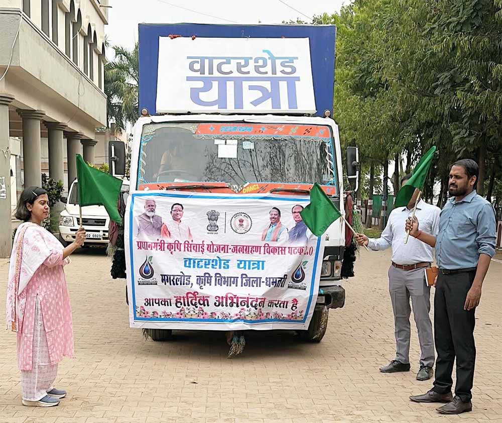 कलेक्टर अबिनाश मिश्रा ने कलेक्टोरेट परिसर से वाटरशेड रथ को हरी झण्डी दिखाकर रवाना किया। यह रथ जिले के मगरलोड विकासखण्ड के विभिन्न गांवों में पहुंचकर जल संरक्षण और भूमि संरक्षण के बारे में लोगों को जागरूक करेगा। ग्रामीणों को इस रथ के माध्यम से पानी बचाने, पानी का समुचित उपयोग करने, जमीन के उर्वरा शक्ति को बचाने-बढ़ाने के लिए किए जाने वाले उपायो की जानकारी ऑडियो वीजुअल माध्यम से दी जाएगी। धमतरी जिले में यह रथ जलग्रहण मिशन कार्यक्रम के तहत प्रधानमंत्री कृषि सिंचाई योजना के माध्यम से भूमि संसाधन विभाग ग्रामीण विकास मंत्रालय नई दिल्ली द्वारा भेजा गया है। यह रथ दो अप्रैल को धमतरी पहुंचा है।
