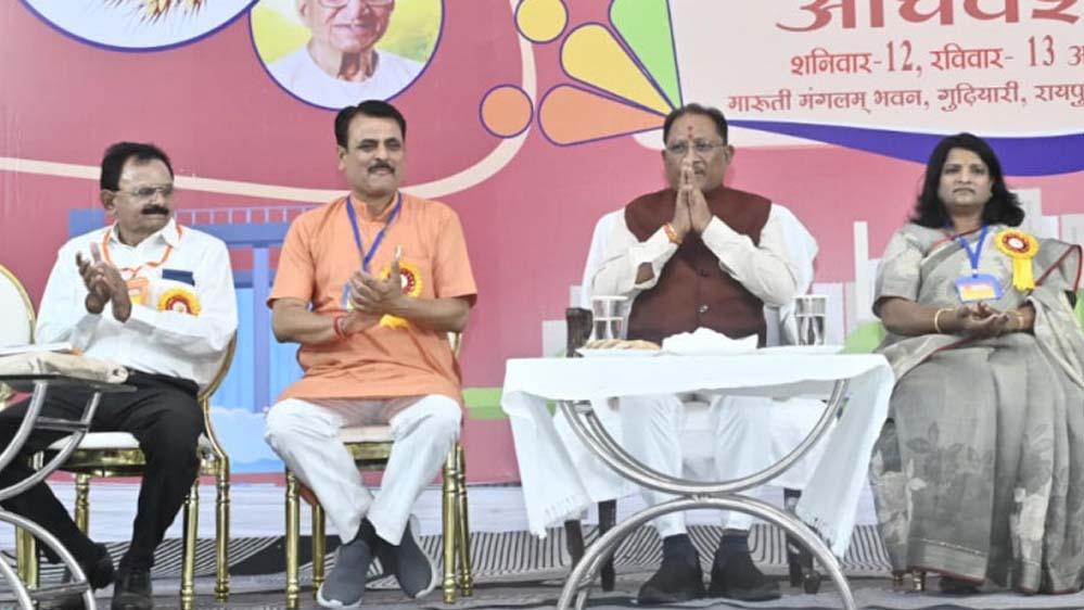 मुख्यमंत्री साय ने अधिवेशन में 21 राज्यों से आए श्रमवीरों का प्रभु श्रीराम के ननिहाल में स्वागत किया