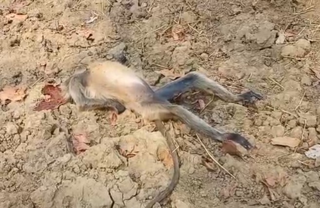 जंगल के तालाब में जहर से दो मवेशी सहित एक बंदर की दर्दनाक मौत