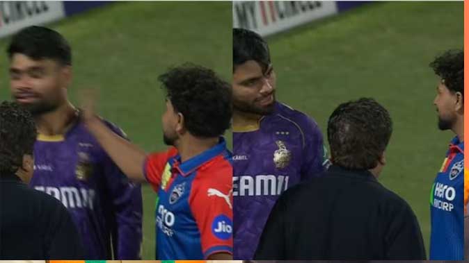 इस मुकाबले के बाद मंगलवार को सोशल मीडिया पर एक वीडियो क्लिप वायरल हुई. जहां मैच खत्म होने कुछ पल बाद ही दिल्ली कैपिटल्स के स्पिनर कुलदीप यादव को लाइव टीवी पर केकेआर के बल्लेबाज रिंकू सिंह को दो बार थप्पड़ मारते हुए देखा गया