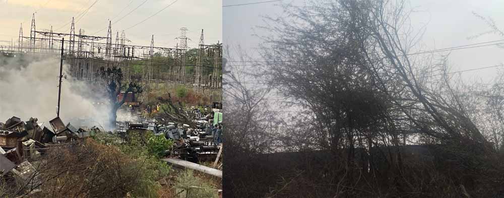 एरिया स्टोर के बाहर पुराने मीटर और ट्रांसफार्मर के कबाड़ में लगी आग, कुम्हारी में रेल यातायात पेड़ गिरने से प्रभावित