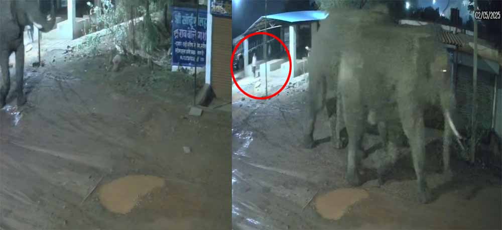 दंतैल हाथी रहवासी इलाके में पहुंचे, राहगीर ने समय पर भागकर बचाई अपनी जान