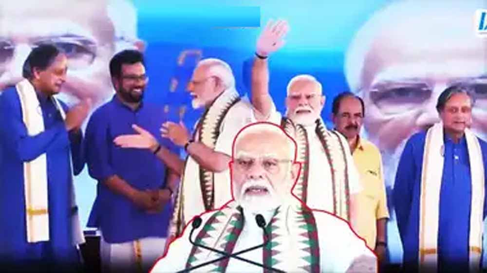 प्रधानमंत्री मोदी ने विपक्षी गठबंधन पर चुटकी लेते हुए कहा, “मैं मुख्यमंत्री जी से कहना चाहता हूं, आप INDI गठबंधन के एक मजबूत स्तंभ हैं, शशि थरूर जी भी यहीं बैठे हैं। आज का यह कार्यक्रम बहुतों की नींद हराम देगा।” हालांकि, उनके भाषण का अनुवाद करने वाले व्यक्ति ने इसका ठीक से अनुवाद नहीं किया, जिस पर प्रधानमंत्री को यह कहना पड़ा कि ‘‘संदेश उन तक पहुंच गया है, जिन तक यह संदेश पहुंचाना था’’।