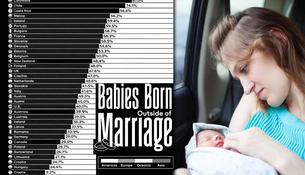 ओईसीडी (OECD) के नए आंकड़ों के अनुसार, विश्व के कई देशों में औसतन लगभग 43% बच्चे विवाह के बाहर पैदा हो रहे हैं। यानी बिना शादी के महिलाएं मां बन रही हैं। आइए जानते हैं कि इस मामले में कौन-से देश सबसे आगे हैं…