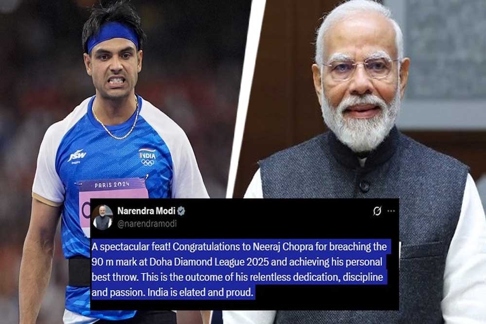 नीरज चोपड़ा ने शुक्रवार (16 मई) को दोहा डायमंड लीग 2025 में 90 मीटर का बैरियर पार कर दिया. जैवलिन थ्रो इवेंट में दूसरा स्थान हासिल करने के बावजूद नीरज ने इतिहास रच दिया. नीरज की इस उपलब्धि पर प्रधानमंत्री मोदी ने उनकी जमकर तारीफ की. पीएम मोदी ने नीरज की मेहनत और उनके अनुशासन का भी जिक्र अपने पोस्ट में किया.