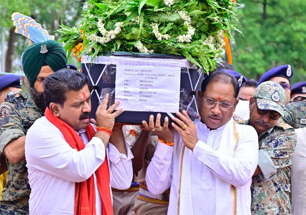 मुख्यमंत्री साय ने शहीद मेहुल भाई के पार्थिव शरीर को कंधा देकर दी अंतिम विदाई