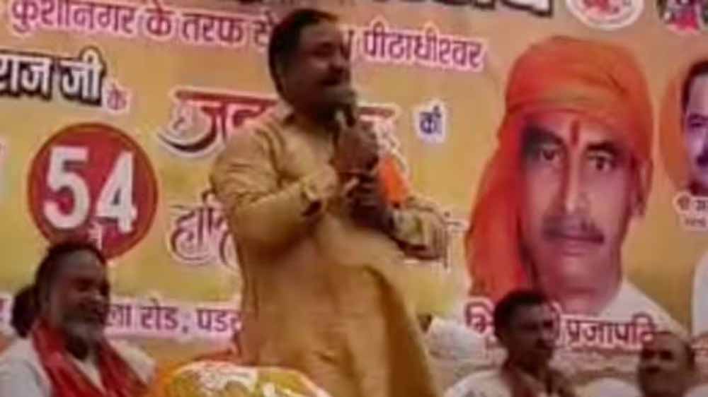 मंत्री राजेश्वर सिंह ने कहा, ''बकरीद पर मुसलमानों को हम गाय नहीं काटने देंगे। अगर प्रतिबंधित पशु कटेंगे तो मुसलमान भी कटेंगे और कुशीनगर में खून की धारा बह जाएगी। किसी भी हालत में प्रतिबंधित पशु की कुर्बानी नहीं दी जाएगी।''