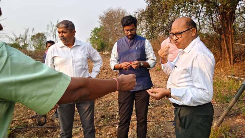 उद्यानिकी विभाग द्वारा पाम ऑयल की खेती दिखाने करचिया के धनीराम की खेती दिखाने ले गए। 5 एकड़ में पाम की खेती कराया जा रहा है। बाड़ी में अफसरों ने स्ट्रॉबेरी की खेती देखकर चौक गए। किसान ने अफसरों को स्ट्रॉबेरी का स्वाद चखाया। किसान के सब्जी बाड़ी के नवाचार और कृषि उत्पाद के प्रति किसान परिवार के लगाव को देखकर अफसर गद गद हो गए। किसान ने बताया कि उनकी तीसरी पीढ़ी उन्नत खेती करने और कृषि सेक्टर में उच्च स्तर की पढ़ाई करने गई है। कलेक्टर ने ऐसे किसानों को योजनाओं के माध्यम से भरपूर प्रोत्साहित करने का निर्देश दिया है।