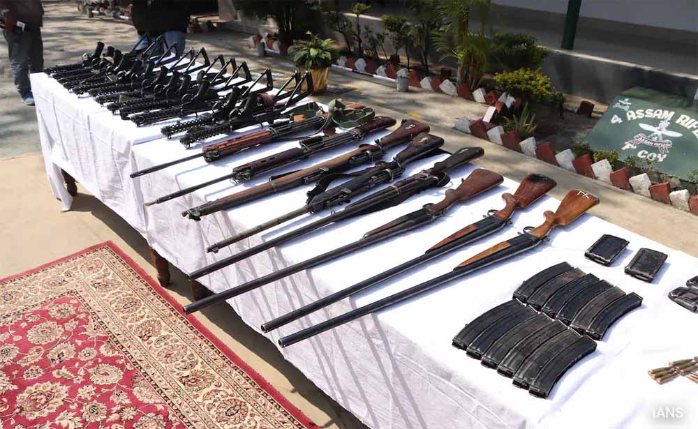 बरामद किए गए हथियारों में 151 एसएलआर राइफल, 65 इंसास राइफल, 73 अन्य प्रकार की राइफल, पांच कार्बाइन बंदूकें, दो एमपी-5 बंदूकें और युद्ध जैसी अन्य सामग्री शामिल हैं। इसके अलावा, विस्फोटक और अन्य युद्ध सामग्री भी बरामद की गई है।