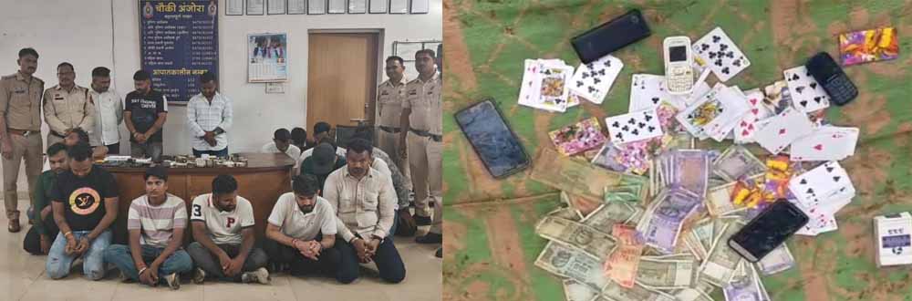 जुआ खेलने वालों के खिलाफ बड़ी कार्रवाई , 18 जुआरियों सहित 10 लाख से अधिक कैश और 20 मोबाइल जब्त
