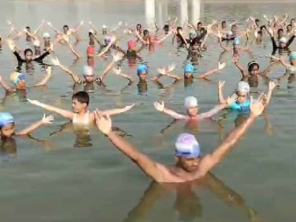 जलयोग : प्रयागराज में योग के प्रति जागरूकता के लिए तैराकों ने किया योगासन