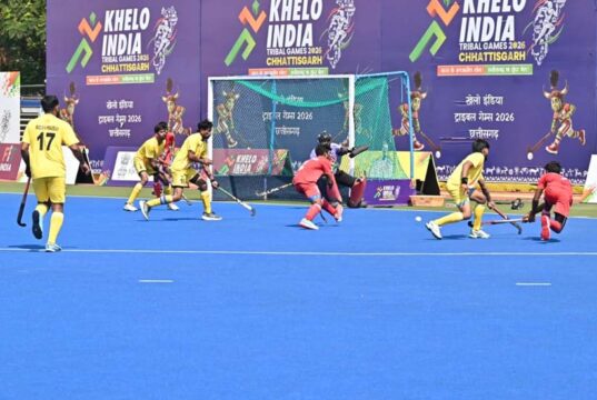 खेलो इंडिया ट्राइबल गेम्स में आज रायपुर के सरदार वल्लभ भाई पटेल अंतरराष्ट्रीय हॉकी स्टेडियम में पुरुषों की हॉकी में छत्तीसगढ़ और मध्यप्रदेश के बीच तीसरे और चौथे स्थान के लिए मैच खेला गया। इसमें छत्तीसगढ़ ने मध्यप्रदेश को 14-6 से हरा कर कांस्य पदक जीता।