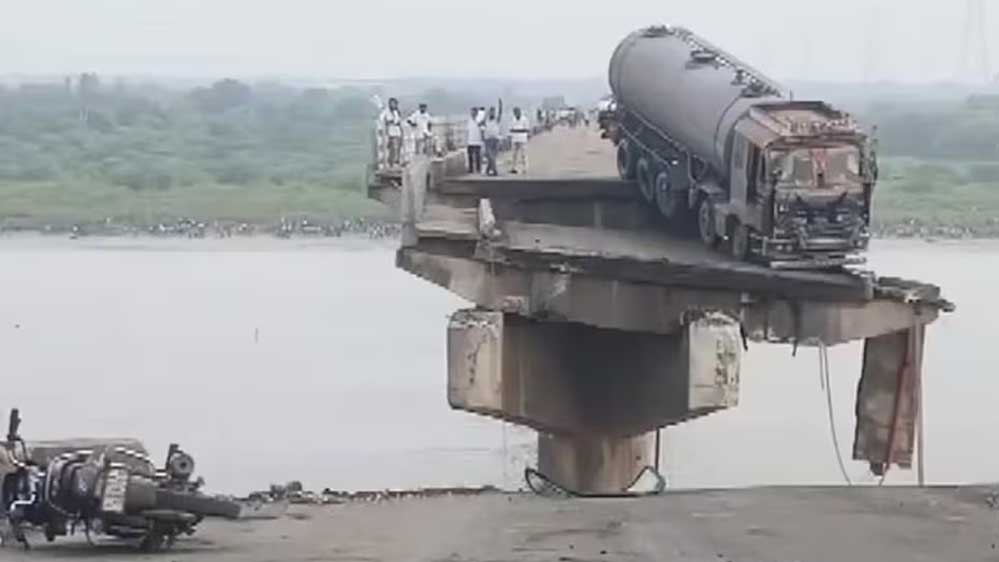 गुजरात के वडोदरा में मध्य गुजरात को सौराष्ट्र से जोड़ने वाला महिसागर नदी पर बना 45 साल पुराना ब्रिज मंगलवार सुबह अचानक टूट गया। इस हादसे में ब्रिज से गुजर रहे दो ट्रक, एक बोलेरो समेत 4 वाहन नदी में गिर गए।