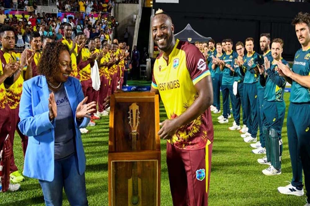 अपना आखिरी अंतरराष्ट्रीय मैच खेल रहे आंद्रे रसेल ने 15 गेंद में दो चौके और चार छक्कों की मदद से 36 रन की पारी खेली। होल्डर एक रन बनाकर आउट हुए। आखिर में गुडाकेश मोती ने नौ गेंद में एक चौका और दो छक्कों की मदद से नाबाद 18 रन बनाए। ऑस्ट्रेलिया की ओर से एडम जैम्पा ने तीन विकेट लिए। नाथन एलिस और मैक्सवेल को दो-दो विकेट मिले। वहीं, बेन ड्वारशुइस को एक बल्लेबाज को आउट किया।