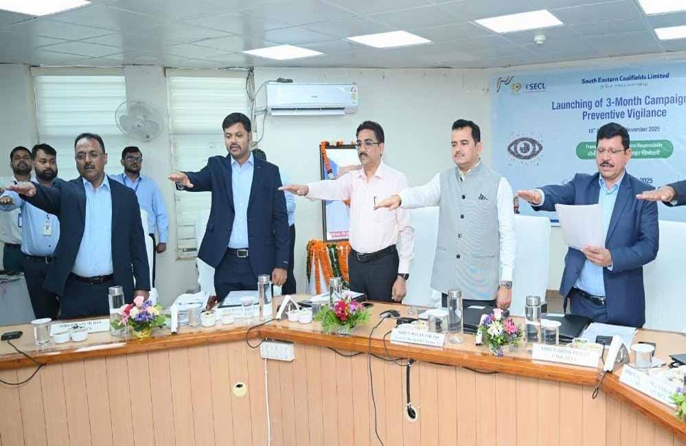 एसईसीएल मुख्यालय बिलासपुर में केंद्रीय सतर्कता आयोग, नई दिल्ली के निर्देशानुसार तीन माह के निवारक सतर्कता (Preventive Vigilance) अभियान का शुभारंभ किया गया। इस अवसर पर मुख्य अतिथि के रूप में मुख्यमंत्री के सचिव पी. दयानन्द उपस्थित थे।
