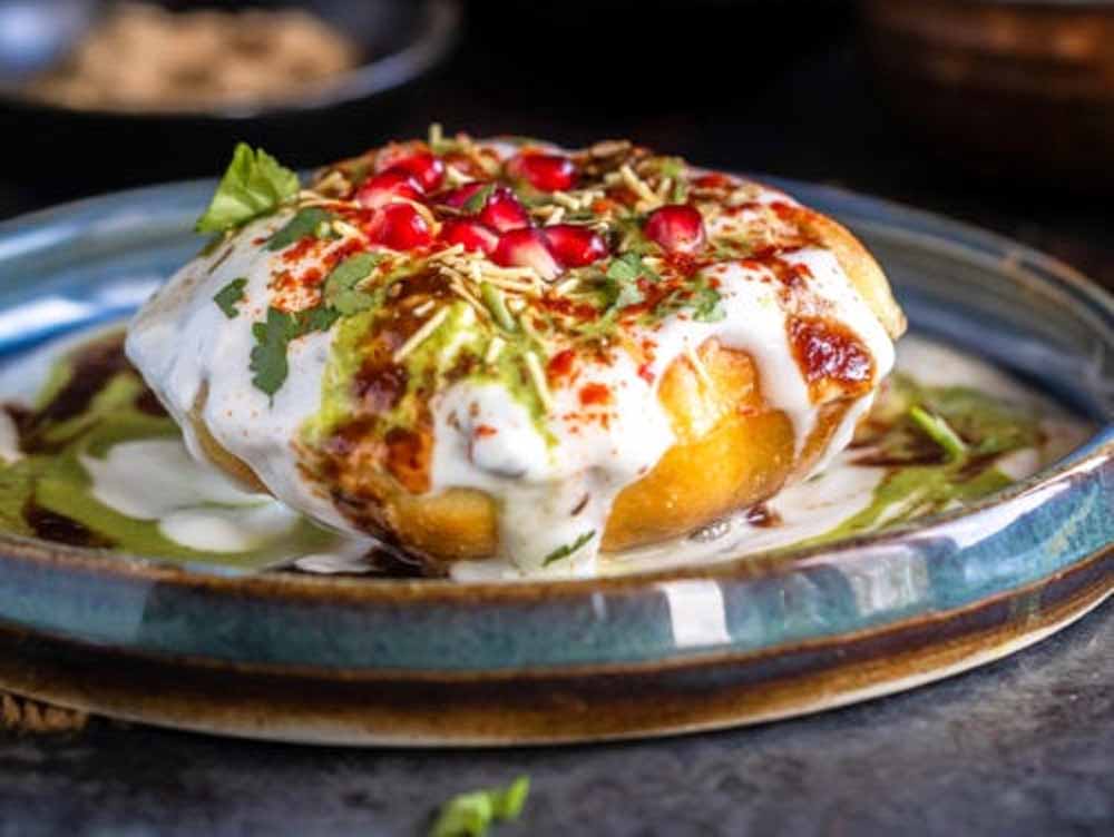 ऊपर से दही डालें, फिर हरी चटनी और इमली की मीठी चटनी डालें।