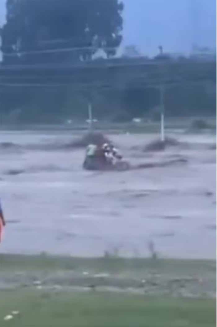 उत्तराखंड की राजधानी देहरादून में बादल फटने से भारी तबाही मची हुई है। सोमवार देर रात हुई भारी बारिश के बाग कई सड़कें टूट गईं। होटल-दुकानें बह गए जबकि कई लोग लापता बताए जा रहे हैं। इस जल सैलाब के कई खौफनाक वीडियो भी सामने आ रहे है। ऐसा ही एक वीडियो सोशल मीडिया पर काफी वायरल हो रहा है जिसमें मदद की गुहार लगाते नदीं के बीचों बीच ट्रैक्टर पर फंसे कुछ लोग देखते ही देखते नदी के तेज बहाव में बह गए और लोगों में चीख पुकार मच गई। रिपोर्ट्स के मुताबिक इस घटना में कम से कम 6 लोगों की मौत की आशंका है। यह वीडियो विकासनगर में उफनती टोंस नदी का बताया जा रहा है।