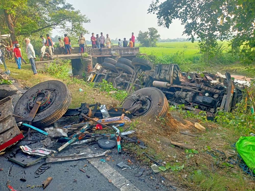हादसे में तबाह ट्रक, उजड़े घर: सासाराम में टक्कर के बाद झारखंड चालक की मौत, दूसरा गंभीर