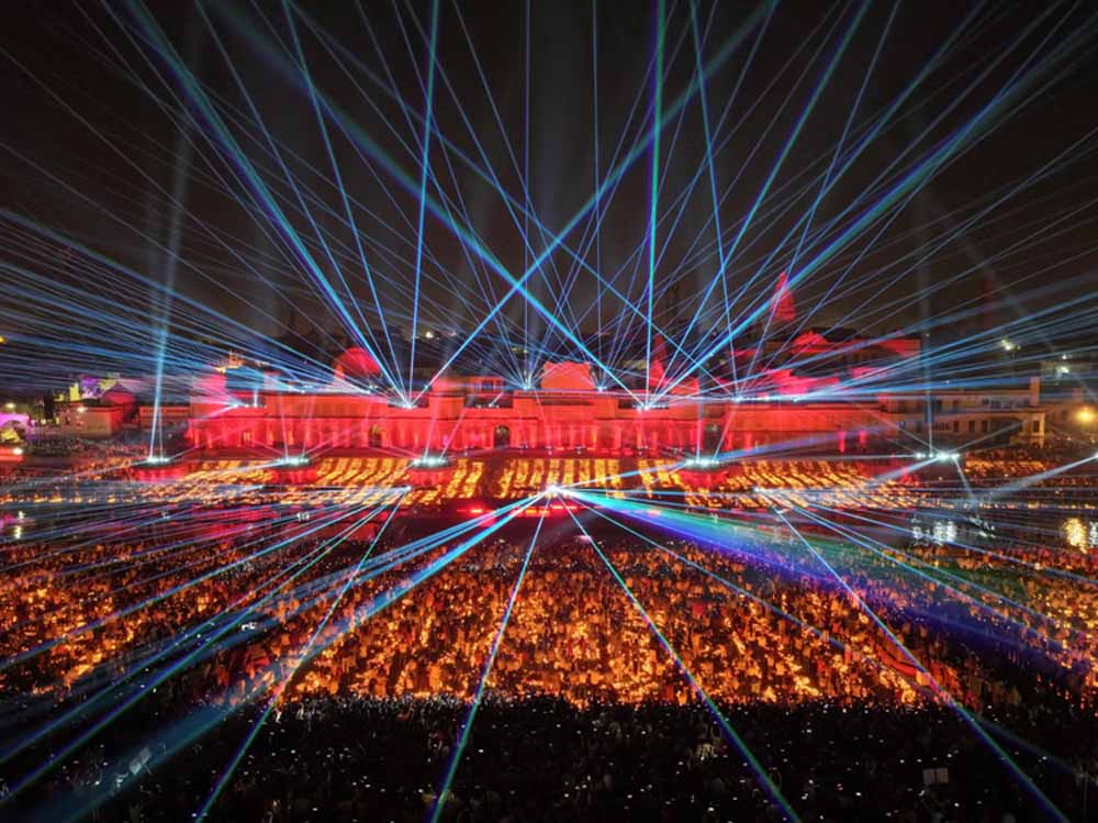 मुख्यमंत्री योगी आदित्यनाथ के नेतृत्व में प्रभु श्रीराम की नगरी अयोध्या में होने वाले दीपोत्सव-2025 में आस्था, संस्कृति और आधुनिक तकनीक का अद्भुत संगम देखने को मिलेगा। राम की पैड़ी सहित 56 घाटों पर जलने वाले 26 लाख दीपों की आभा जहां भक्ति-उल्लास का प्रतीक बनेगी, वहीं कोरियोग्राफ्ड म्यूजिकल ड्रोन शो और 3-डी होलोग्राफिक म्यूजिकल लेजर शो श्रद्धालुओं को अनूठा अनुभव देंगे। उत्तर प्रदेश पर्यटन विभाग ने ड्रोन शो और लेजर शो की प्रस्तुतियों को दो दिन (18 व 19 अक्टूबर) कराने का निर्णय लिया है।