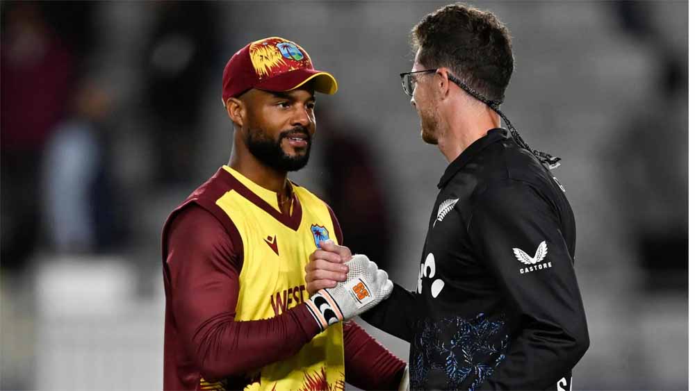 वेस्टइंडीज के शानदार क्षेत्ररक्षण से तीन खिलाड़ी रन आउट हुए। जेसन होल्डर और मैट फोर्ड ने बेहतरीन गेंदबाजी की। फोर्ड ने 20 रन देकर दो और होल्डर ने 31 रन देकर दो विकेट झटकर न्यूजीलैंड को बड़ा स्कोर नहीं बनाने दिया। टिम रॉबिन्सन (23) और रचिन रविंद्र (26) दोनों अच्छी शुरुआत के बावजूद बड़ी पारी नहीं खेल सके।
