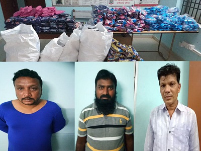 गुटका से भरी 6 बोरियों के साथ तीन गिरफ्तार
